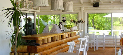 En madera pintada de blanco y mimbres y con diseños marinos este pequeño Hotel se destaca en su entorno de verde y rio, de pura ecologia