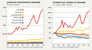 The DailyKos posted several times last year on income inequality and disproportionate benefits of proposed tax cuts, and here is a piece they linked to on income inequality. DailyKos also posted an excellent graph illustrating the deficit with and without tax cuts: